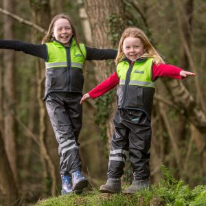This hardwearing kid’s vest is built to be worn again and again, without wear or tear. 100% wind and waterproof, and totally breathable – it offers trusted wet weather protection and core comfort where they it, arms-free manoeuvrability where they don’t. Be seen, be safe, in high vis neon green.